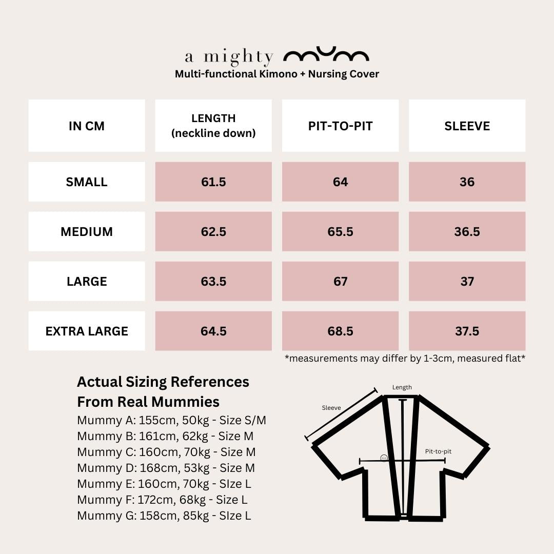 With its soft pastel hue, our A Mighty Kimono will be your go-to outfit for all occasions! The droplets design represent the tears, blood, sweat and milk that go into each and every breastfeeding journey. Use it as outerwear to throw on over a nursing camisole when you are in a hurry, or for keeping you warm in the office for your discreet pumping session!